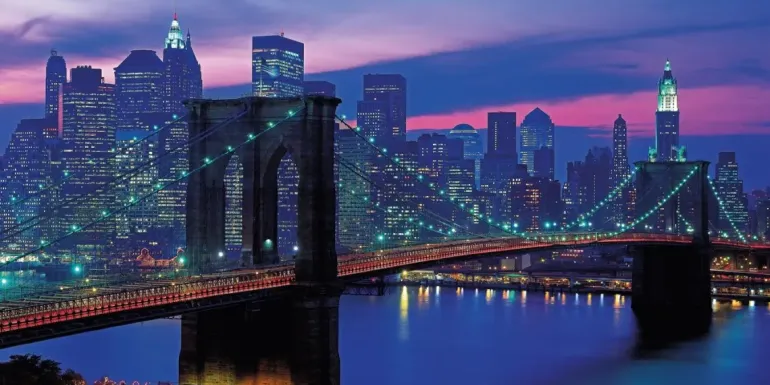 Ett makalöst stort pussel med en fantastisk vy över New York och stadens berömda Brooklyn Bridge!