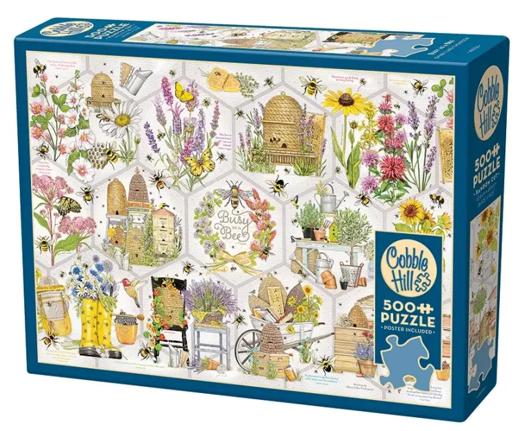 Ett pusselmotiv för dig som älskar trädgårdsmotiv, gillar färgsprakande pusselkollage eller som tycker extra mycket om bin. Här finns allt att berätta om de surrande djurens liv och leverne, vi ser blommor, trädgårdsredskap, honungskakor, olika sorters bin och bikupor blandat med roliga citat och fakta om bin.