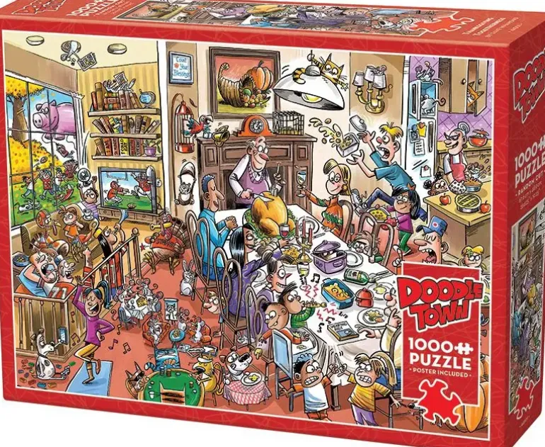 Thanksgiving firas i Oktober eller November och främst i USA, Canada, Saint Lucia och Liberia. Det här galna pusselmotivet fångar allt man ser fram emot med en familjehögtid (men även det man helst är utan!).
