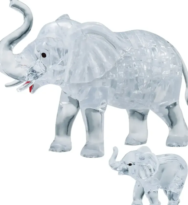 Ett 3D-Kristallpussel i form av en Elefant med en elefantunge.