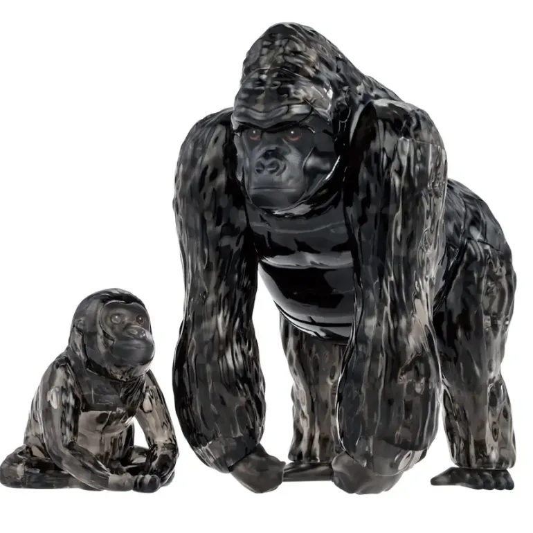 Ett 3D-Kristallpussel i form av en gorilla med sin unge.
