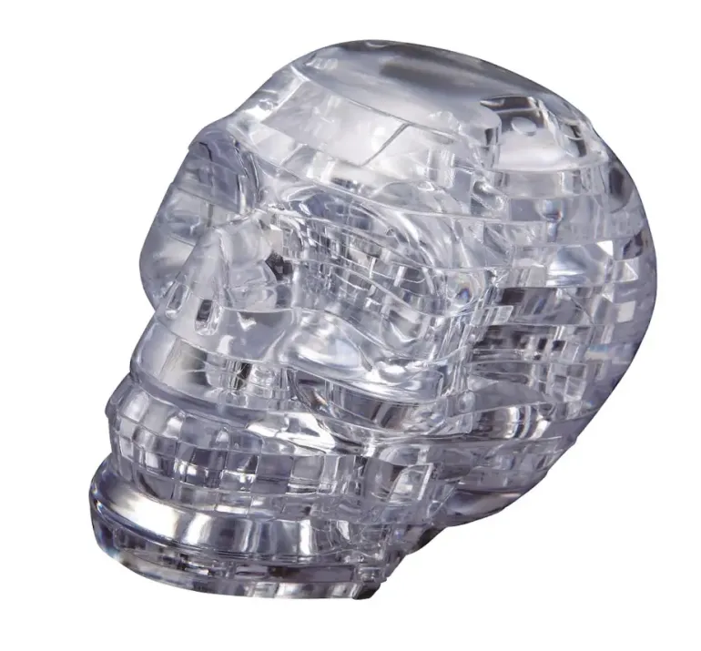Ett 3D-Kristallpussel i form av en dödskalle.