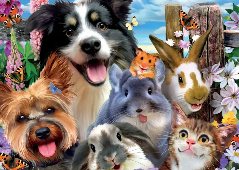 På en gård har djurvännerna samlats för att föreviga minnet av en rolig dag tillsammans. Säg omelett och selfien är klar!
