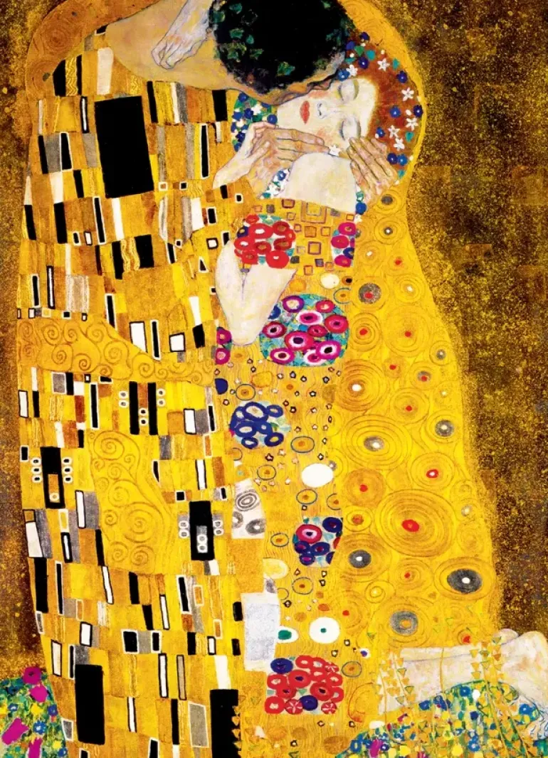 Motiv av Gustav Klimts ”Kyssen” (Der Kyss). Gustav Klimt 1862- 1892 Österrike-Ungern.