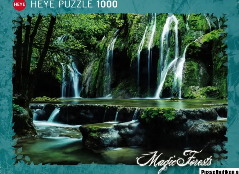 Motiv i serien Magic Forests, ett stort vattenfall i en grön skog.