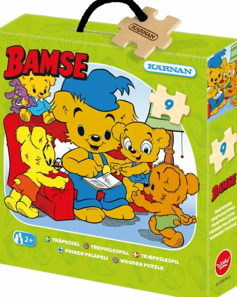 Bamse har slagit sig ned i en stor röd fåtölj och hans barn samlas omkring honom, äntligen är det dags för en sagostund!