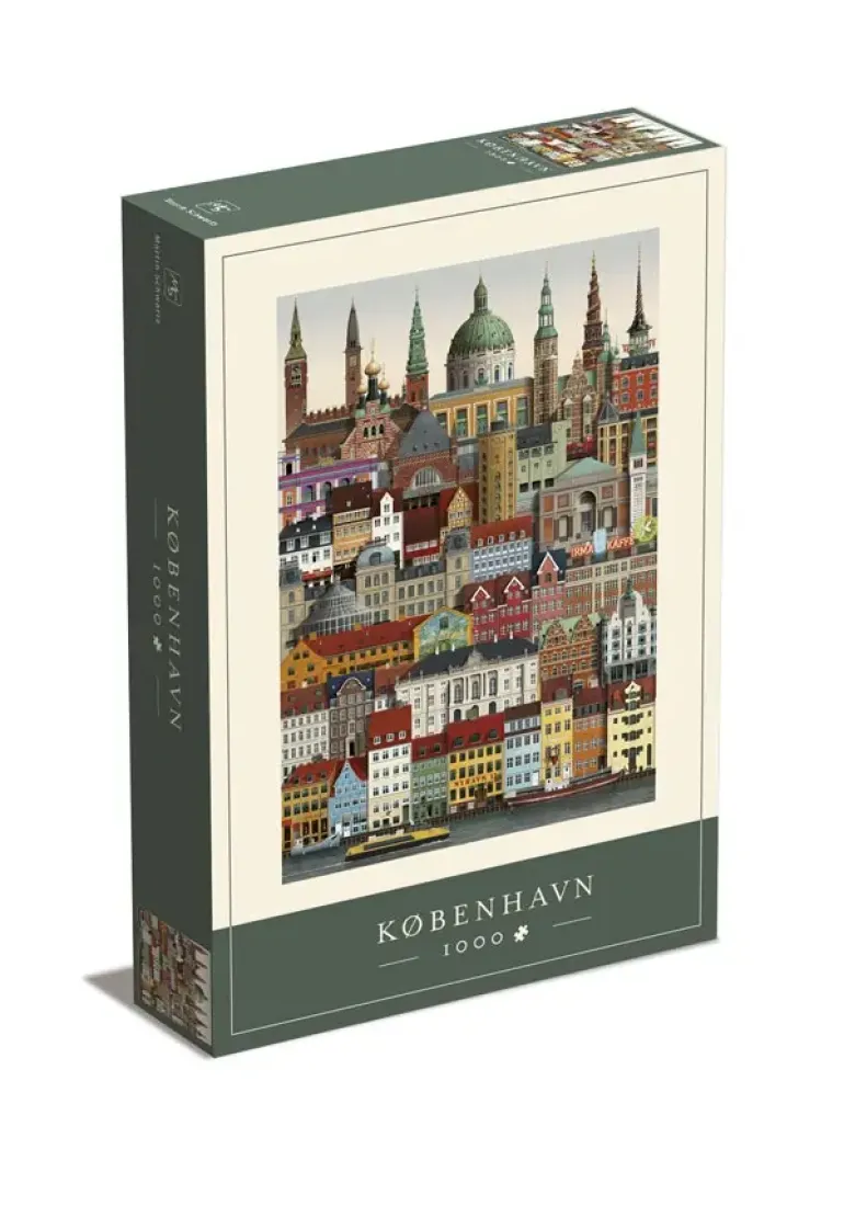Konstnären Martin Schwartz har komprimerat stadsvyn och med noga omsorg valt ut russinen i stadens arkitektur. Medan du lägger pusslet kommer du att få chans att lära känna många av Köpenhamns byggnader och längs vägen förhoppningsvis även upptäcka något nytt som du inte har lagt märke till tidigare.