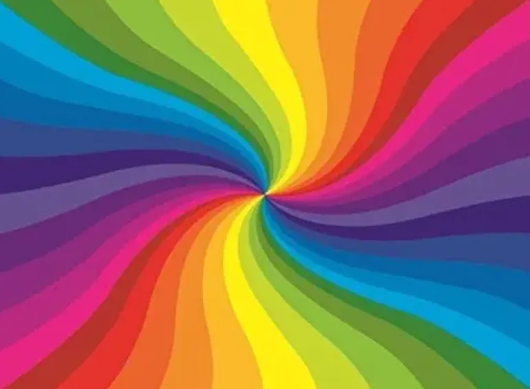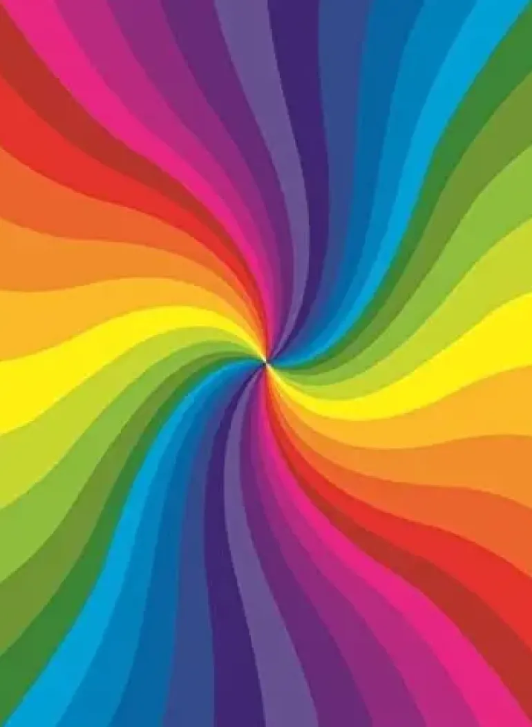 En virvel i härliga regnbågsfärger.