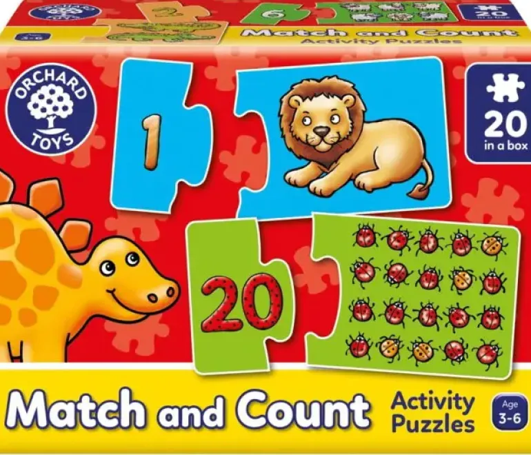Matcha rätt siffer-pusselbit med den pusselbit som har samma antal djur på sig som siffran visar. Och det går inte att fuska, endast de rätta bitarna passar ihop med varandra!