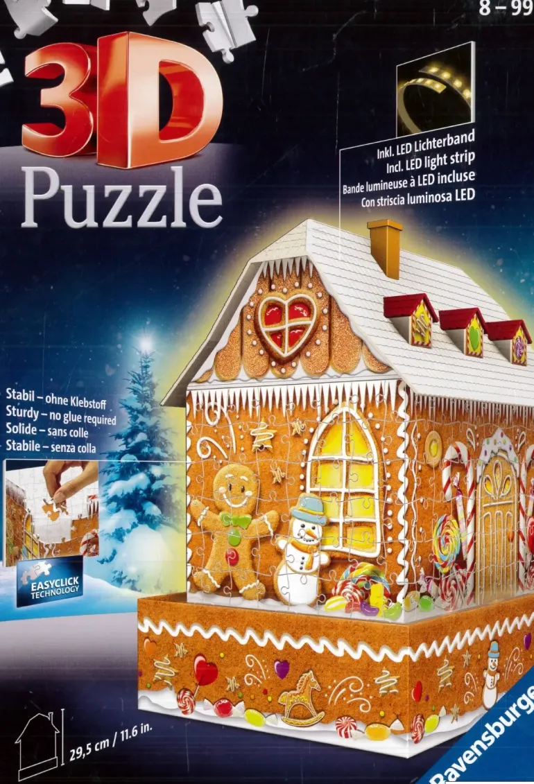 Innehåller 216 numrerade pusselbitar, 41 accessoarbitar, ljusmodul med LED & instruktioner. Behöver 3st AAA batterier, medföljer ej.