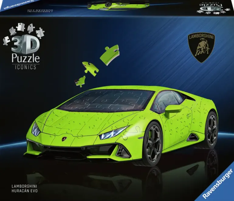 Den ikoniska Lamborghini Huracán EVO som 3D-pusselmodell med realistisk design och i en pigg grön färg!