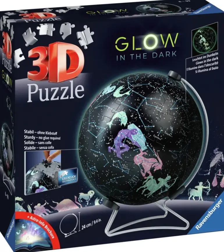 Upptäck natthimlen med denna 3D-pussel jordglob med belysning!
