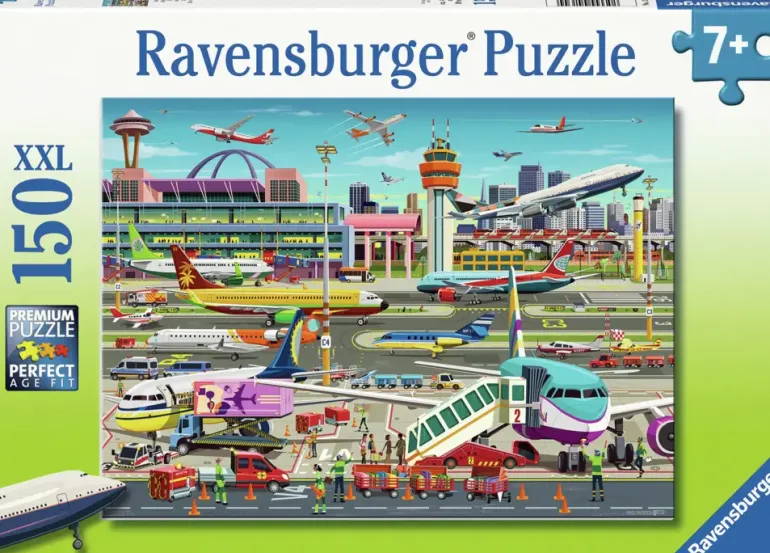 Ett spännande pusselmotiv för alla som har ett flygplansintresse eller är sugen på att resa, och ett perfekt pussel om man vill prata med barn om hur det går till när man ska flyga någonstans!
