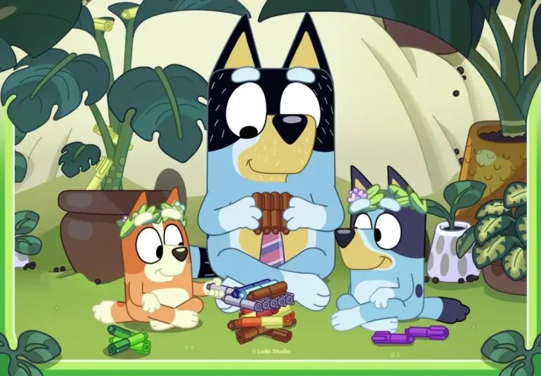 Två pussel på 24 bitar vardera, med olika motiv från den tecknade barnserien Bluey.