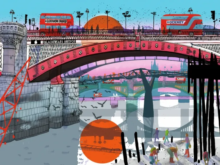 Illustration av London och Blackfriars Bridge, av den prisade italienska illustratören Carlo Stanga.
