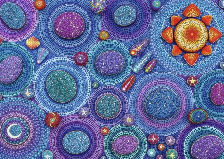 Kollage av stjärnbilder i tolkning av illustratören Elspeth McLean.