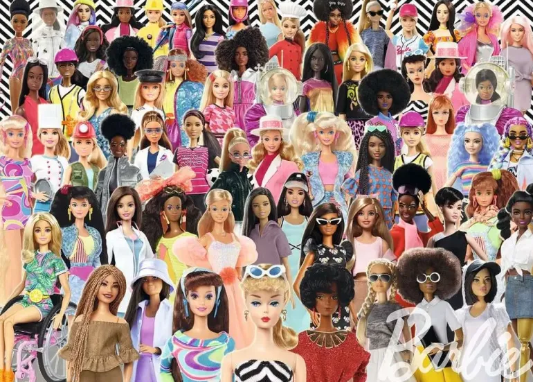 Kan du namnen på alla Barbiemodeller och vilket år de kom ut i handeln? Finns din Barbie med på bilden? Vilka kläder hade din docka? Vilken är din favorit? Ett motiv för alla Barbiefans eller för dig som bara vill ha en pusselutmaning utöver det vanliga.
