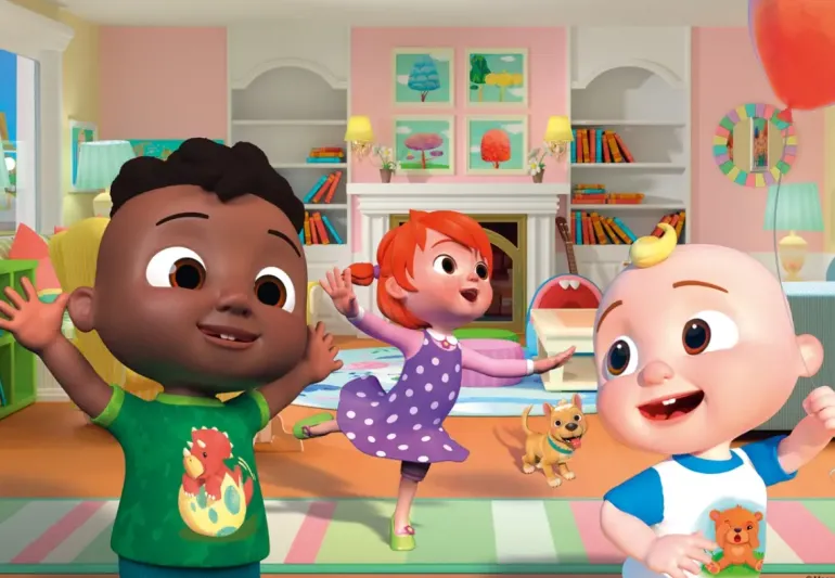 Två pussel på 12 bitar vardera, med olika motiv från YouTube-kanalen CoComelon.