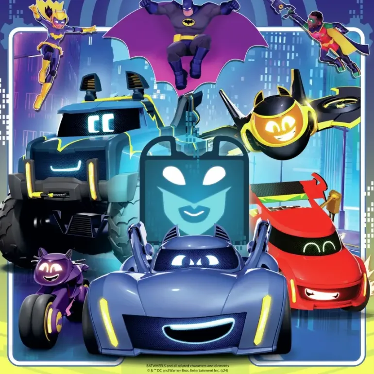 Tre pussel på 49 bitar vardera, med olika motiv ur DCs tecknade TV-serie ”Batwheels”.