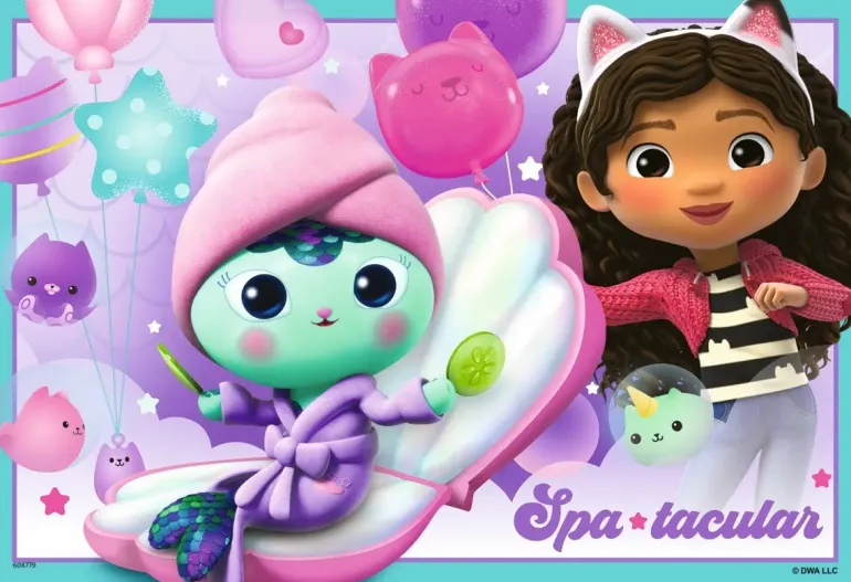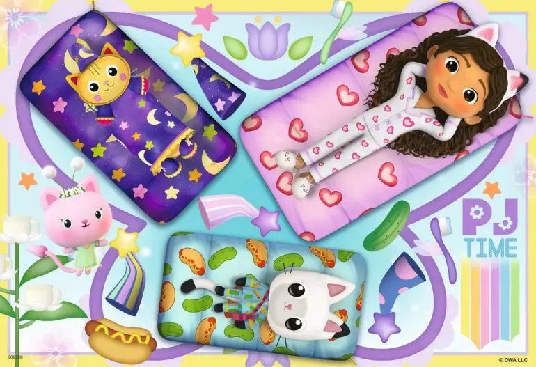 Två pussel på 12 bitar vardera, med olika motiv av Gabbys pyjamasparty.
