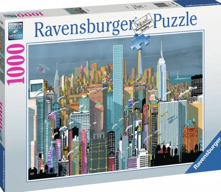 Vi blickar ut över New Yorks kända skyskrapor, i luften flyger helikoptrar och i bakgrunden skymtas Frihetsgudinnan med sin hissade fackla. Motivet är målat av den prisade italienska illustratören Carlo Stanga.