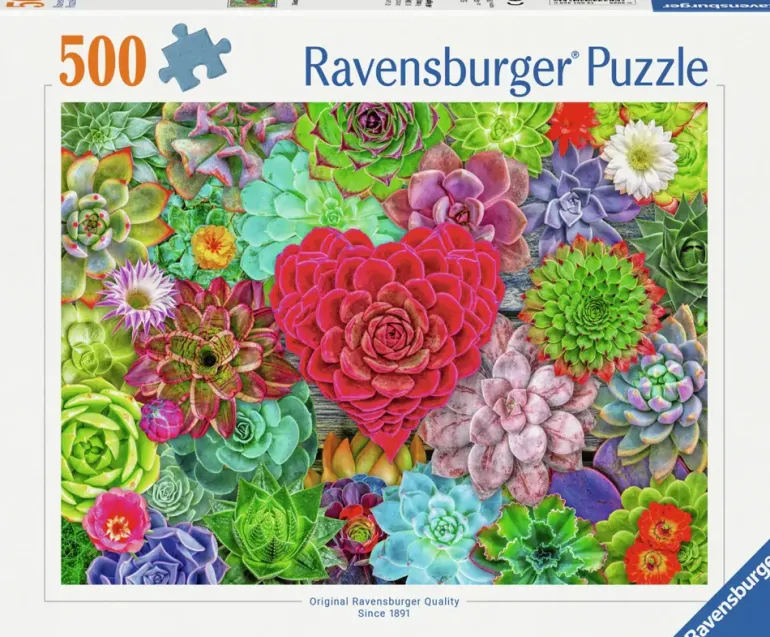 Ett gäng vackra fetbladiga växter har ordnats i en fin formation med ett hjärta i centrum.