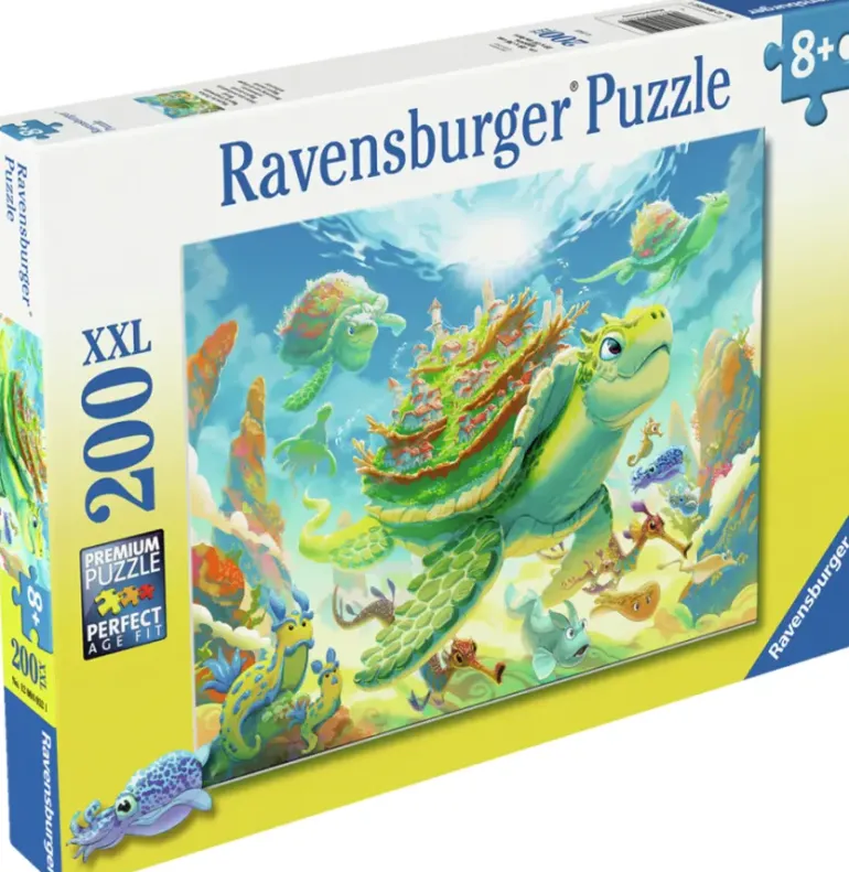 Under havsytan simmar sköldpaddor, sjöhästar och fiskar, sida vid sida i en hisnande fart! De här sköldpaddorna är speciella, de bär nämligen böljande landskap och städer på sitt stora skal!