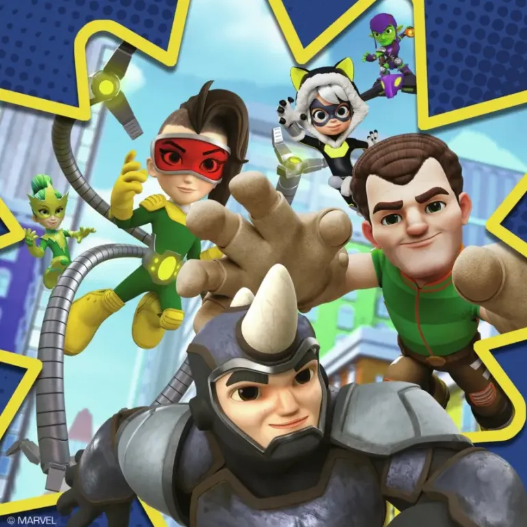 Tre pussel på 49 bitar vardera, med olika motiv från Marvels tecknade TV-serie Spidey Amazing Friends.