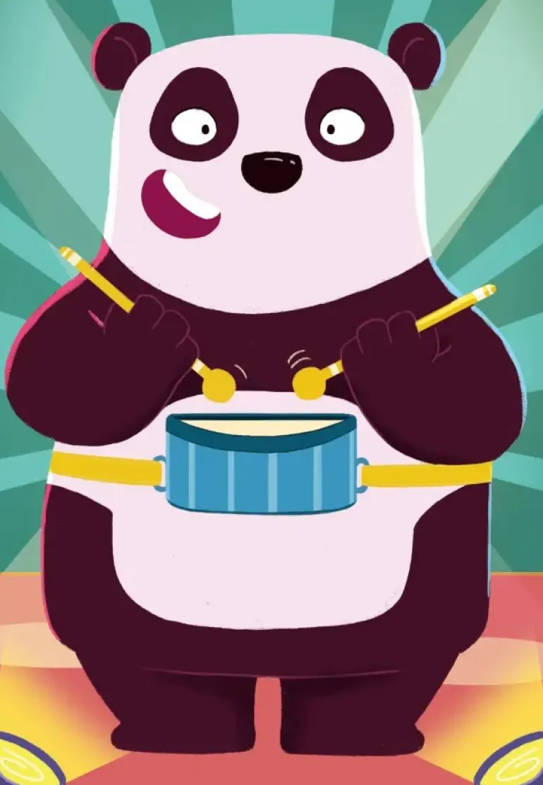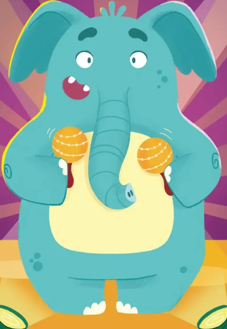 Tre pusselmotiv på djur med instrument. En panda som spelar på trumma, elefant med maracas och en pingvin med sin keytar!
