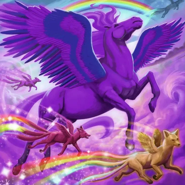 Tre pussel på 49 bitar vardera, med magiska väsen i fokus. Två enhörningar galopperar i månljus bland rosenbuskar och en Alicorn (enhörning med vingar) spatserar fram över en äng på natten. I det tredje motivet ser vi en bevingad häst som har följe av vargar med vingar som tycks skapa regnbågar på himlavalvet.