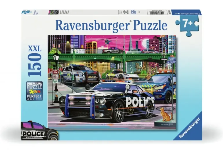 I en stad är det fullt polispådrag denna stjärnklara kväll. Polisbilarna trängs på gatan och på himlen flyger en polishelikopter.
