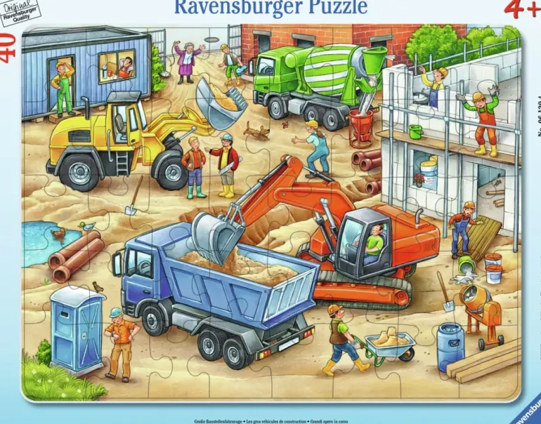På byggarbetsplatsen är arbetet i full gång och alla tunga maskiner som behövs är på plats. Men ska de lyckas fånga in hunden som rymt från sin matte? Kommer toaletten bli ledig i tid? Kommer han som spillt cement att få skäll av chefen? Och hur ska det gå för fisken som råkat komma med i vattentunnan? Frågorna hopar sig i detta härliga rampussel med många fina detaljer, perfekt för byggintresserade personer med små nävar.