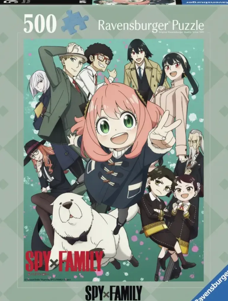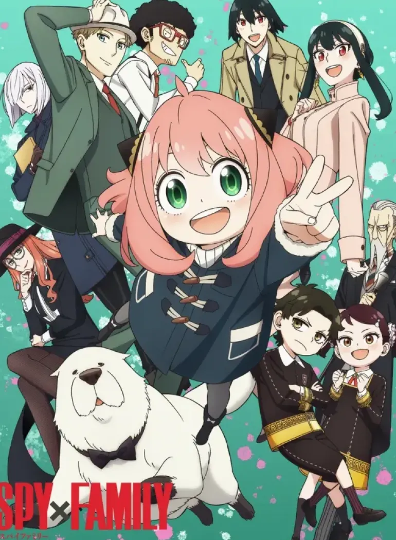 Motiv från mangaserien ”Spy x Family” med kända karaktärer i seriens första säsong.