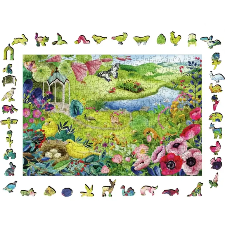Det här pusslet i trä ger dig nya pusselutmaningar på ett stimulerande och lekfullt sätt! Pusselbitarna är utskurna i trä och bitarna är unika, en del av bitarna har formen av olika djur och växter.