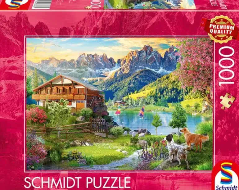 Vid bergskedjan Dolomiterna ligger ett stort hus i Schweizisk stil, det är omgivet av en grönskande trädgård och fint placerat intill en sjö. Utanför tomten betar getter som tryggt vaktas av två fårhundar. På sjön seglar man optimistjolle med färgglada segel och i himlen svävar måsar i solen.