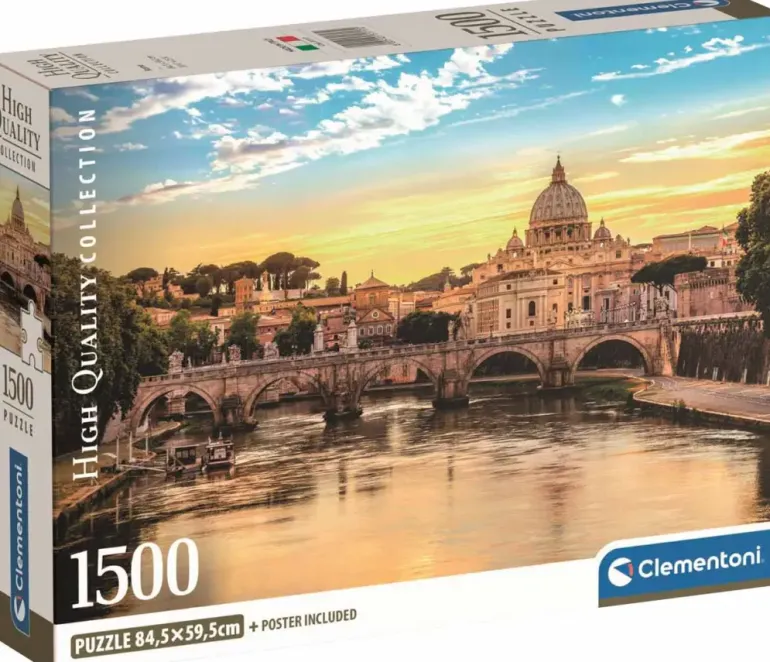 Utsikten över Rom i gryningen från denna 1800-talsbro är mycket vacker, med hela landskapet upplyst och där man kan blicka ut över Peterskyrkan, Sant’Angelo-bron och floden Tibern, en fantastisk syn!