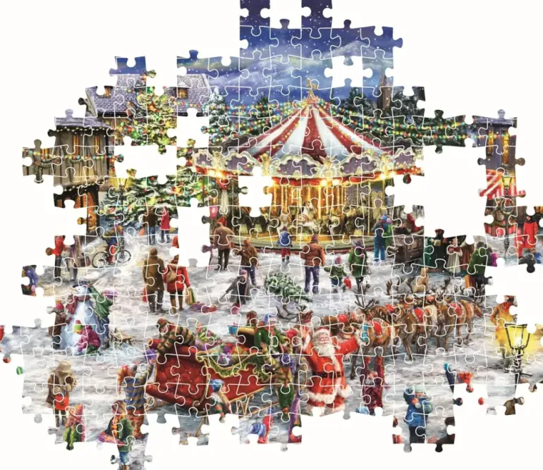 Det är julmarknad i den lilla staden och snöflingorna dalar ner över det vackert julbelysta torget. Här finns julgranar, butiker och stånd med godsaker, julkransar och produkter som kan bli fina julklappar. Barnen är lyriska, här finns nämligen också en fantastisk karusell, man kan bygga snögubbar i snön och äta brända mandlar. Och dessutom har självaste jultomten precis landat, med sin välfyllda släde och sina renar, för att önska alla i staden en riktigt God Jul!