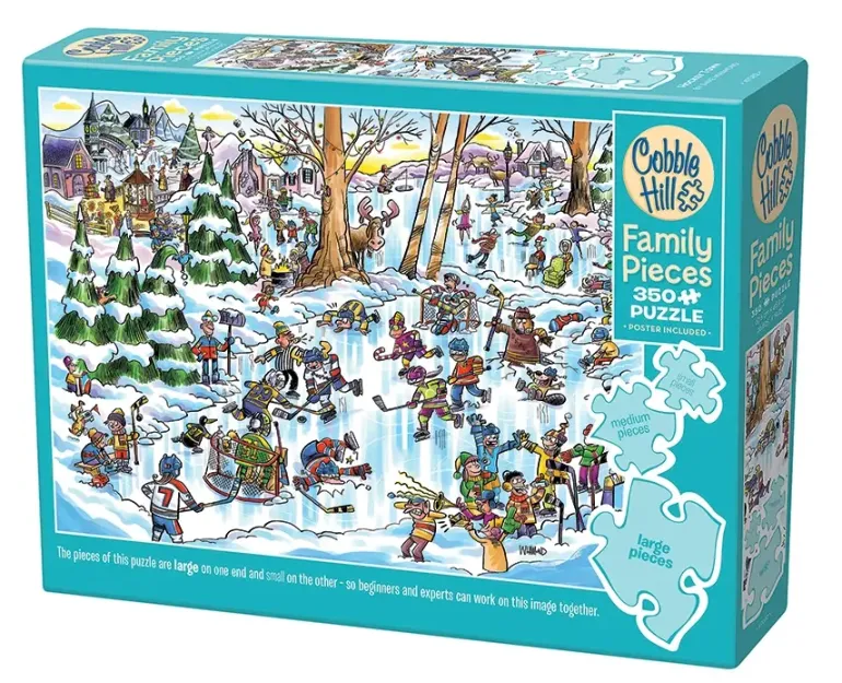 Det här familjepusslet innehåller tre olika bitstorlekar så att pusslare på alla nivåer kan samarbeta. De stora bitarna finns i ena änden av pusslet, de medelstora i mitten och de små bitarna i den andra änden. Familjepussel är också ett bra alternativ för nybörjare som vill ha lagom många bitar.