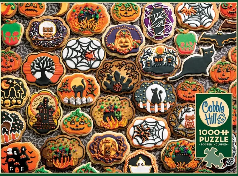 Ett kollage av smarriga och lite skrämmande halloween-kakor. Vi bjuds till en skrämmande fest för ögonen i form av svarta katter, snidade pumpor, en häxgryta, klibbiga spindelnät, spökhus och vakande ugglor. Var så god att ta för dig!