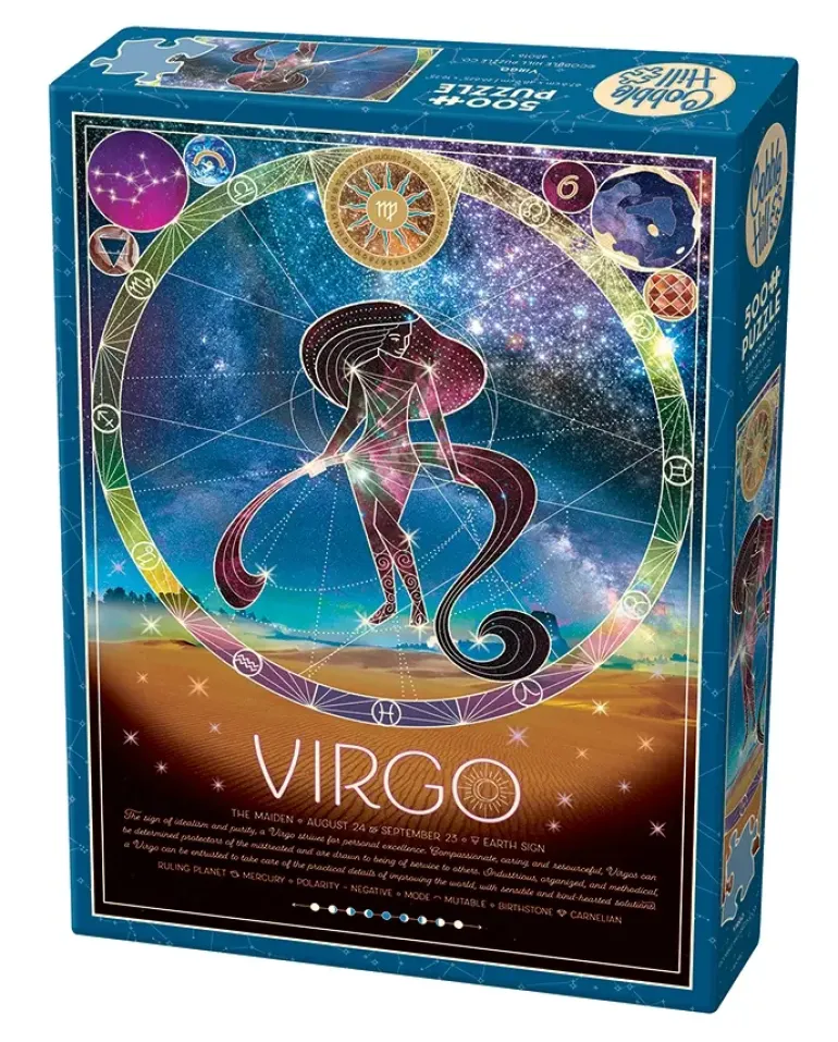Pusselmotivet visar stjärnbildens konstellation, symbol, styrande planet, polaritet, läge och månadssten.