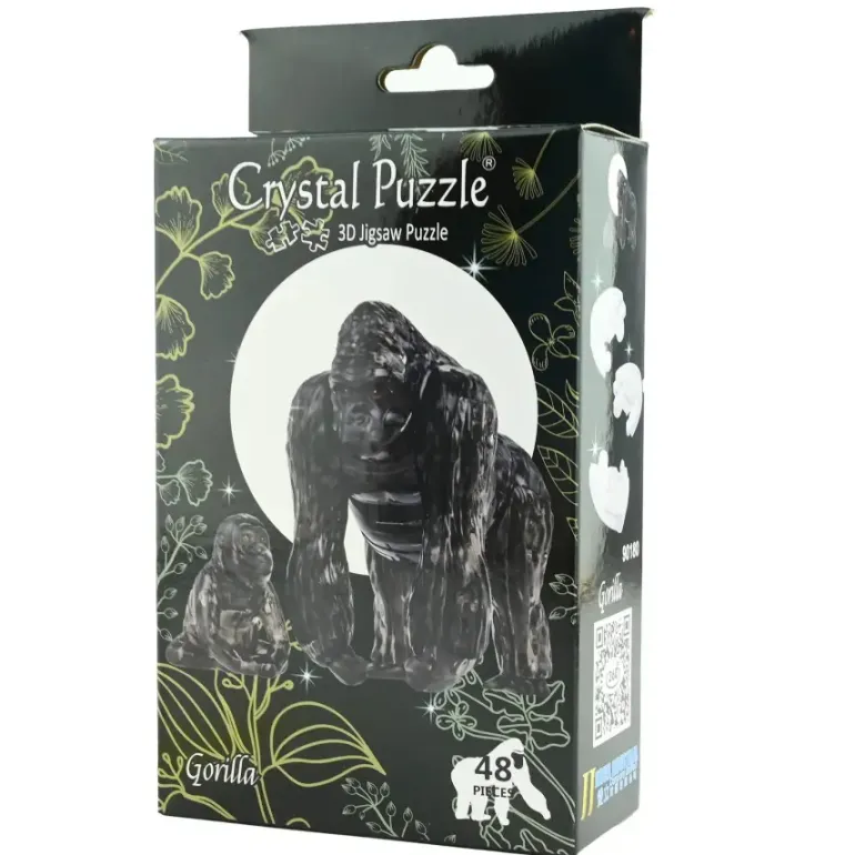 Ett 3D-Kristallpussel i form av en gorilla med sin unge.
