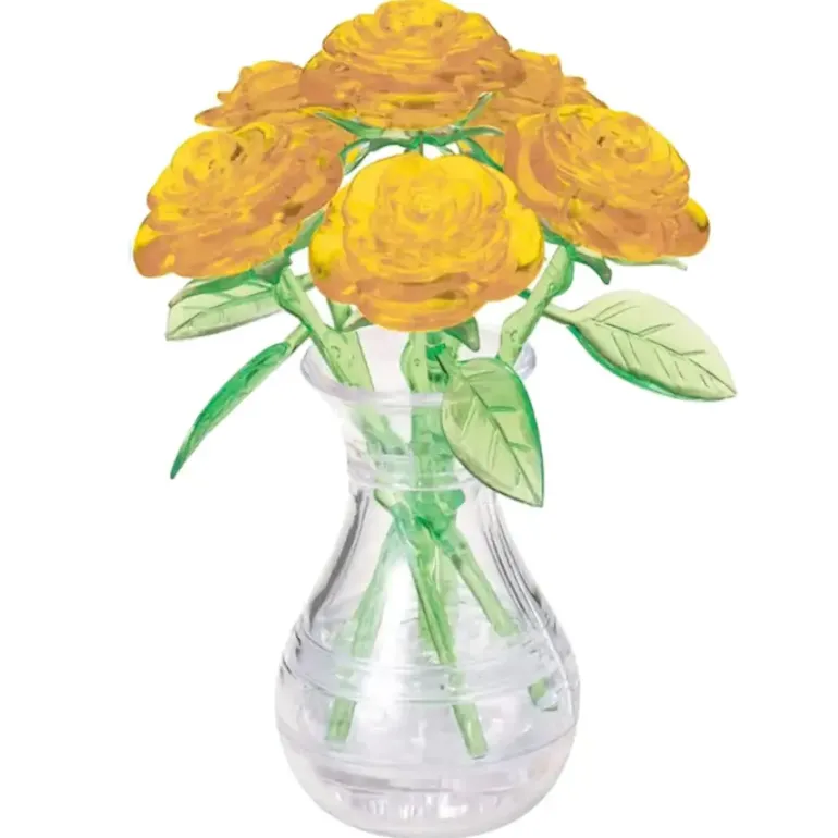 Ett 3D-Kristallpussel i form av 6 gula rosor i vas.