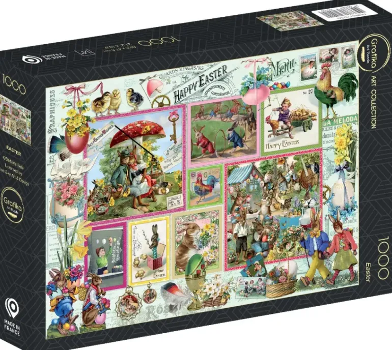 Ett härligt kollage av påskkort och påsk-dekorationer i gammeldags tappning.