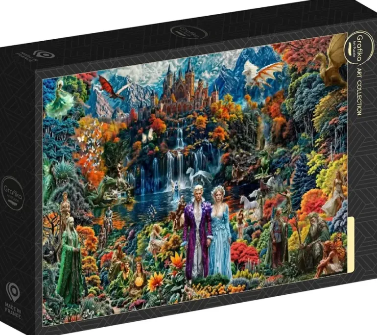 Stig in i en förtrollad värld där sagoslott reser sig över glittrande vattenfall och mytiska varelser rör sig bland färgsprakande skogar. Här möts älvor, drakar och magiska gestalter i ett landskap fyllt av äventyr och fantasi.