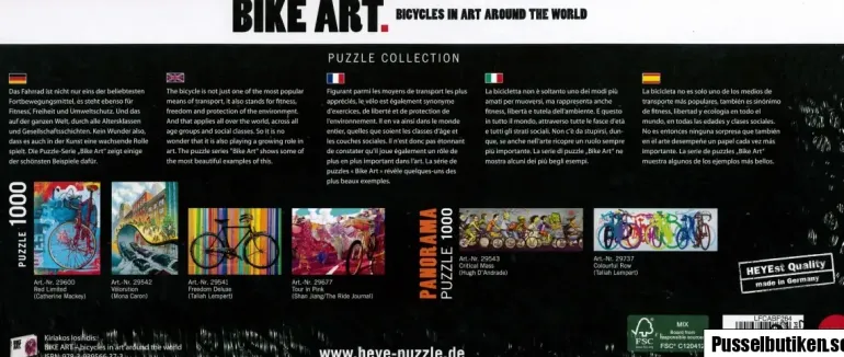 Panoramapussel med målat motiv av färgglada cyklar på rad. Målat av Taliah Lempert.