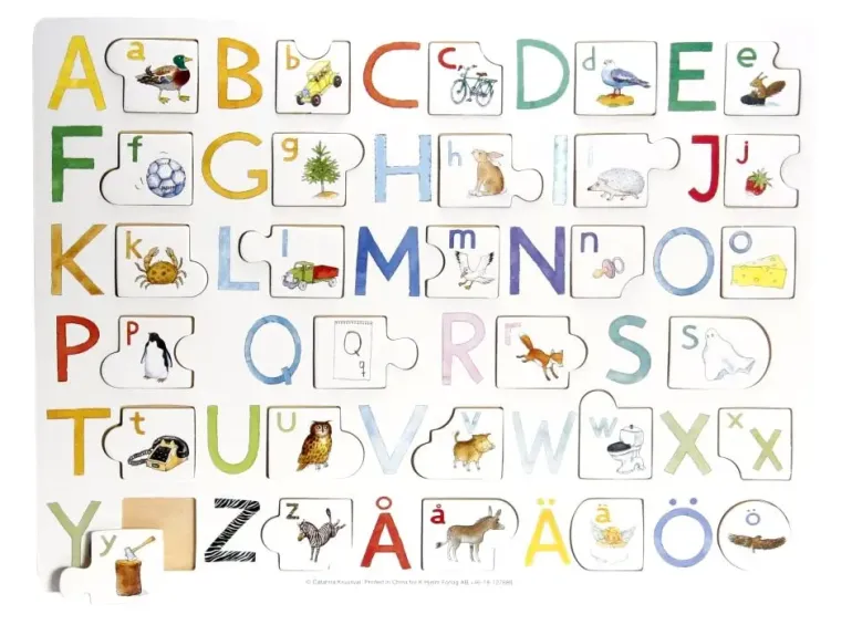 Varje liten bokstav har en passande bild, och hjälper dig och ditt barn att koppla ihop bokstäver med ord. Bokstavsbilderna är lite upphöjda vilket gör det lättare att greppa bitarna.
