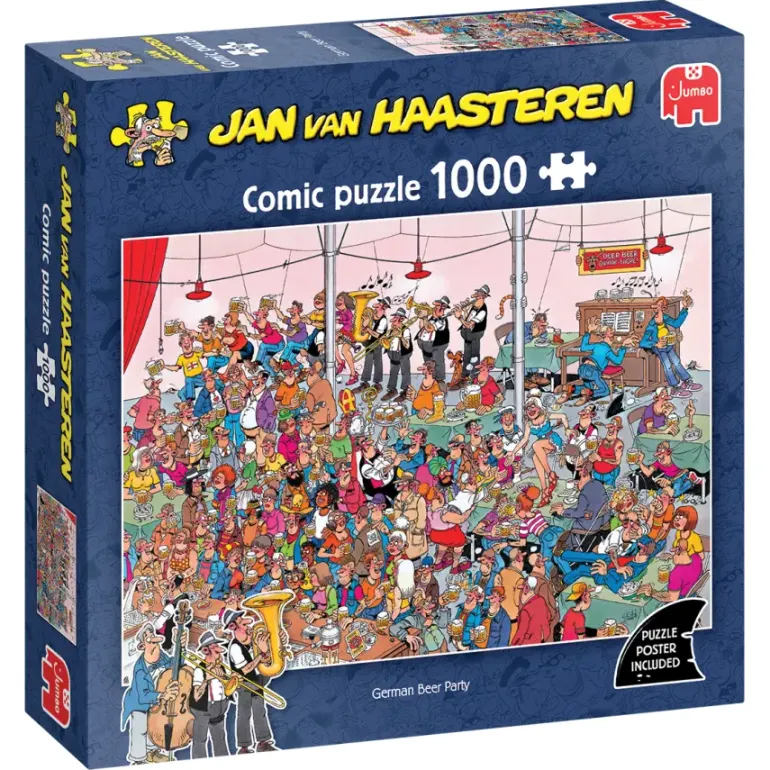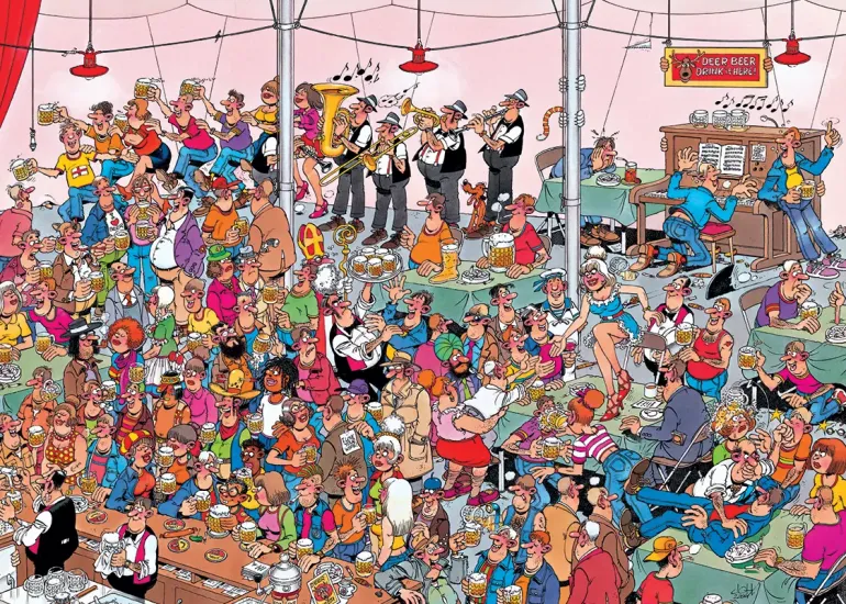 Pusslet är illustrerat av serietecknaren och humormästaren Jan Van Haasteren, med öga för detaljrikedom och pusselglädje i varje pusselbit!