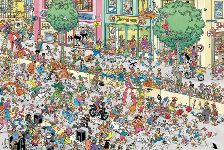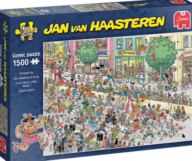 Loppet hålls för att fira öppnandet av ett helt nytt köpcentrum, och som alltid i Jan Van Haasteren-pussel är motivet fullt av färgstarka detaljer, oväntade vändningar och visuella skämt.