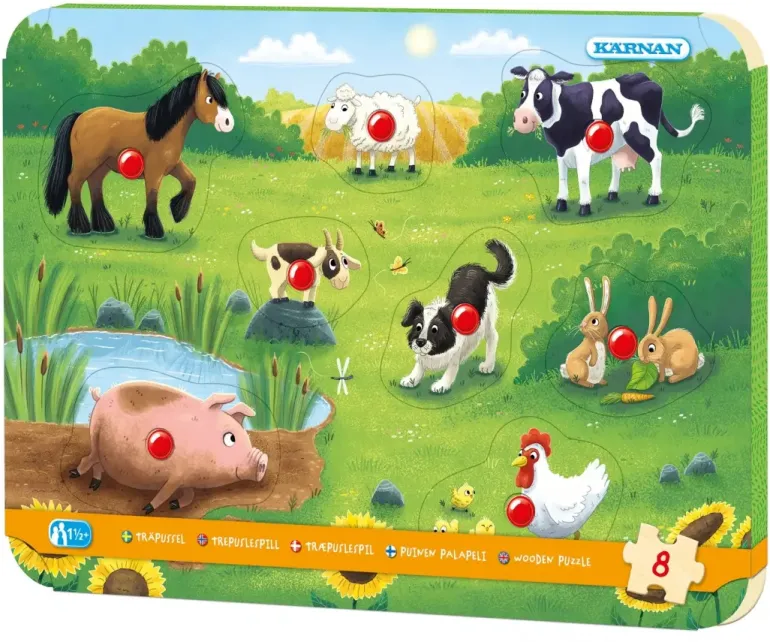 Ett härligt knoppussel för de yngsta med fina djurbilder. Perfekt för att öva tal och finmotorik tillsammans!