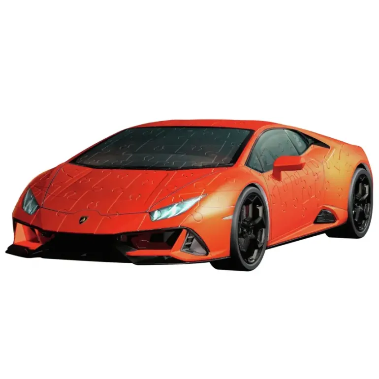 Den ikoniska Lamborghini Huracán EVO som 3D-pusselmodell med realistisk design och i en eldigt orange färg!